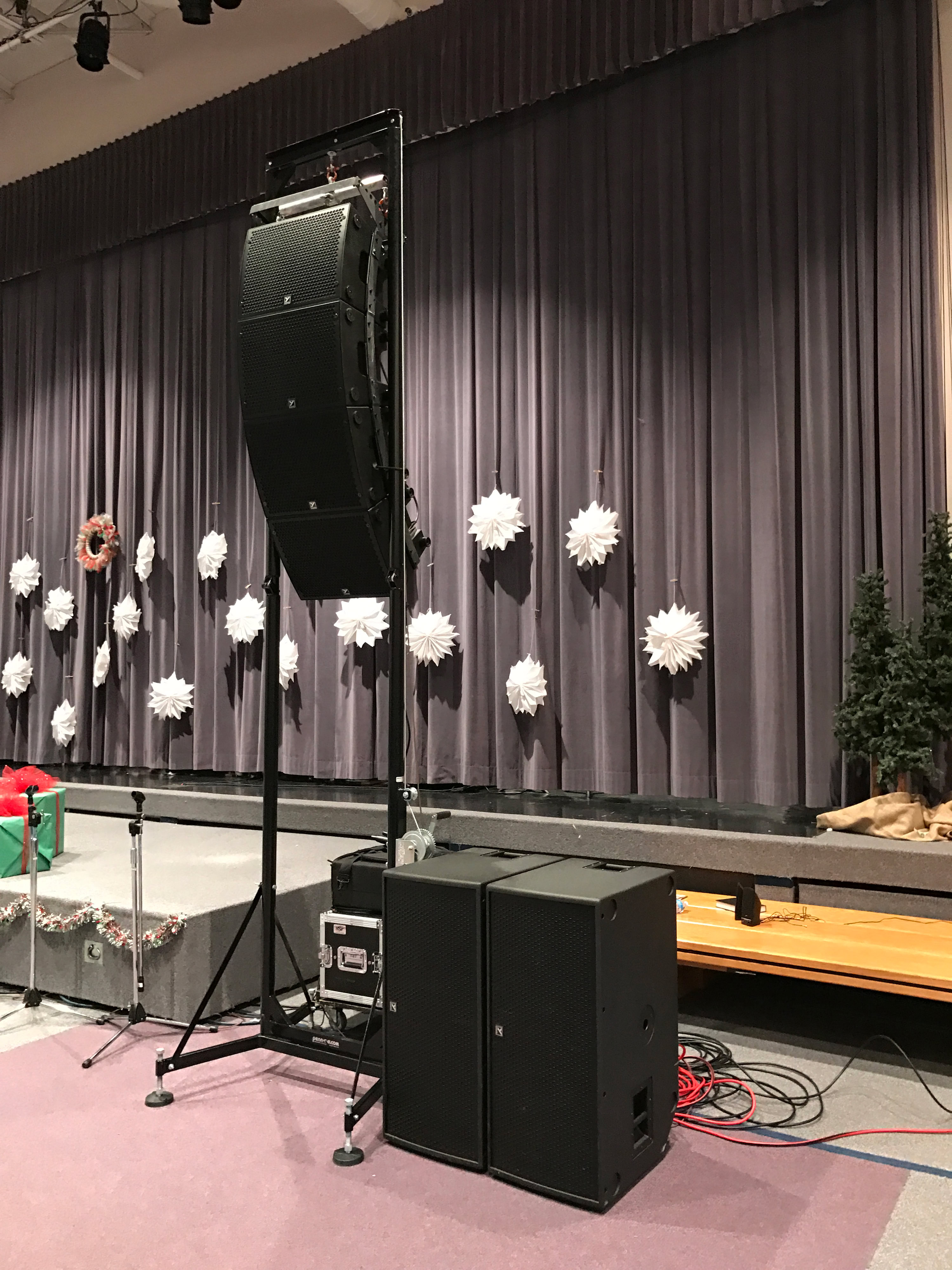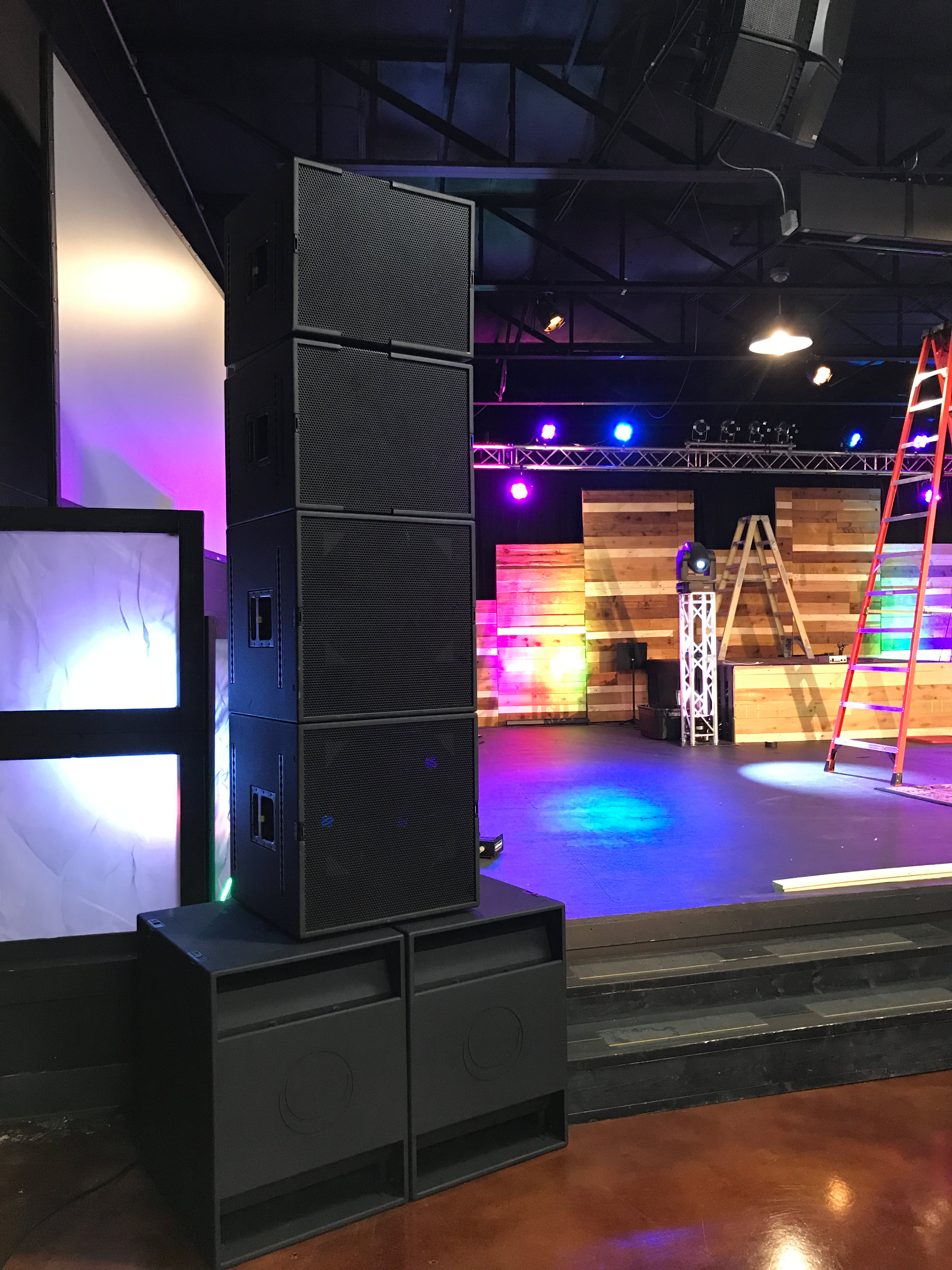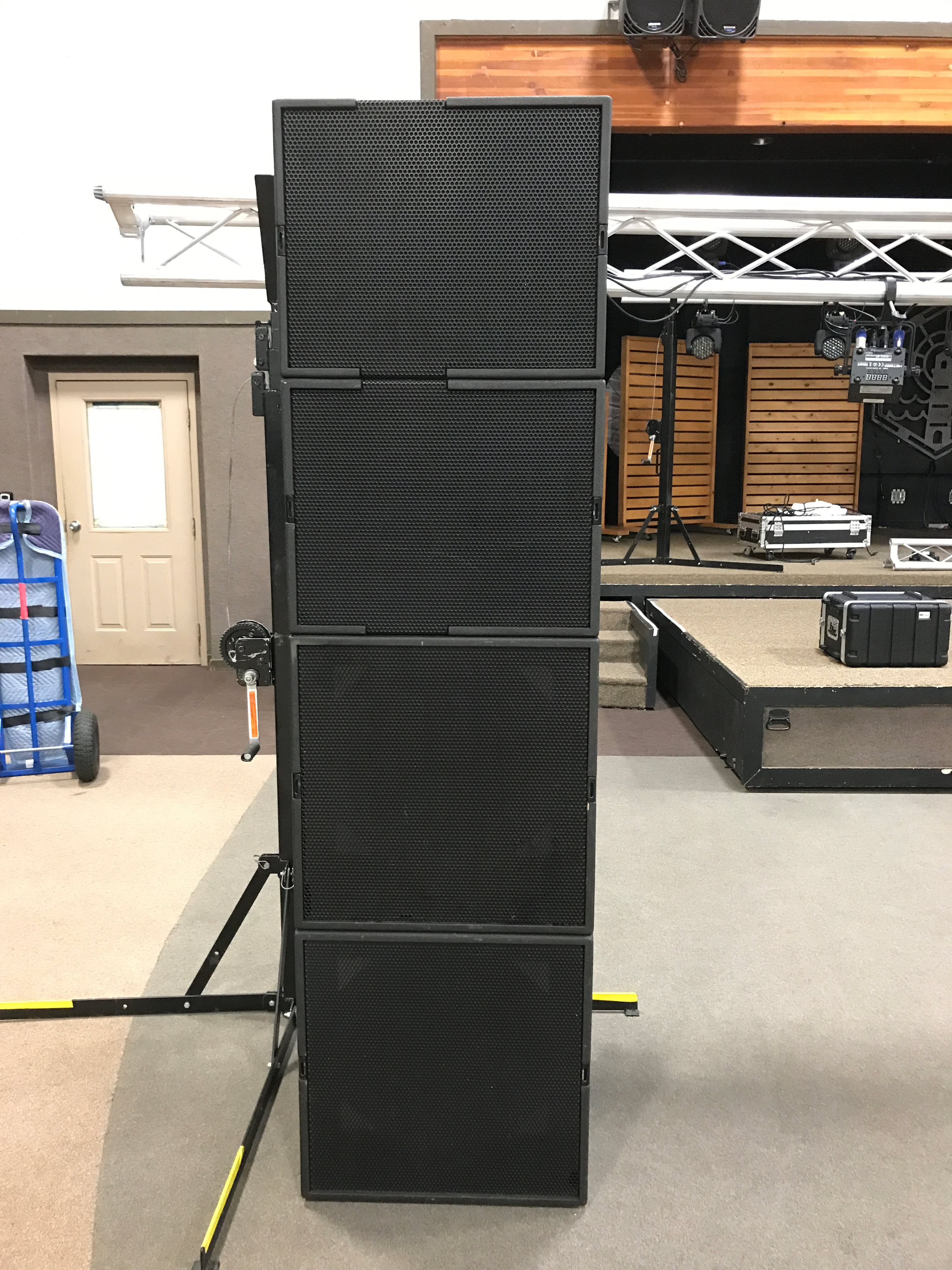 8 ELS210 2-way, 4 NS9 dual 18” subs, 4 N4 15, 2 2-way, 2 ELB8 Flying/Stacking Bumpers