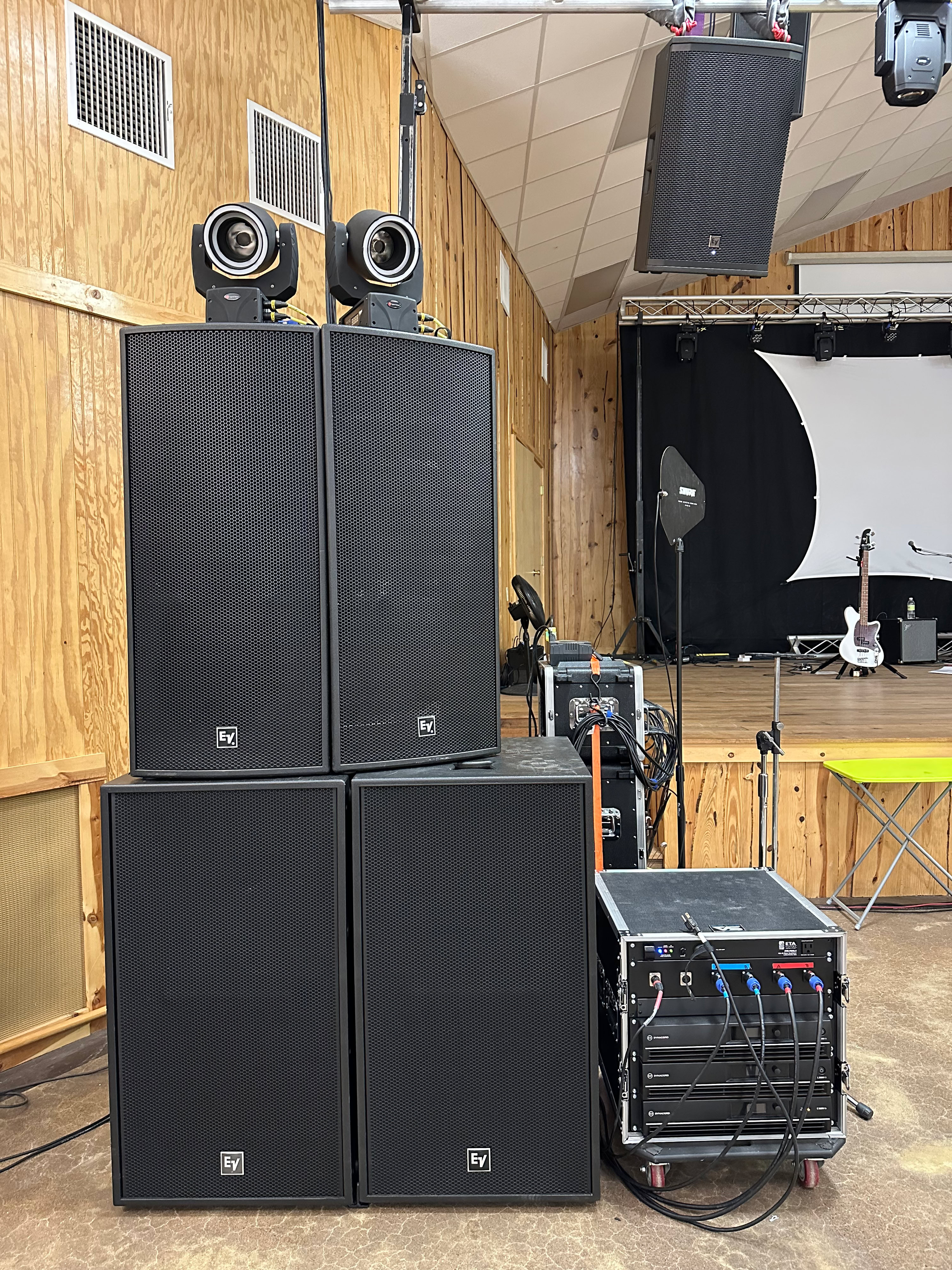 8 Yorkville PSA1, 4 PSA2S dual 15” subs, 2 E2100P 21” subs, 4 PS12P, 2 PS15P, 2 PS18S