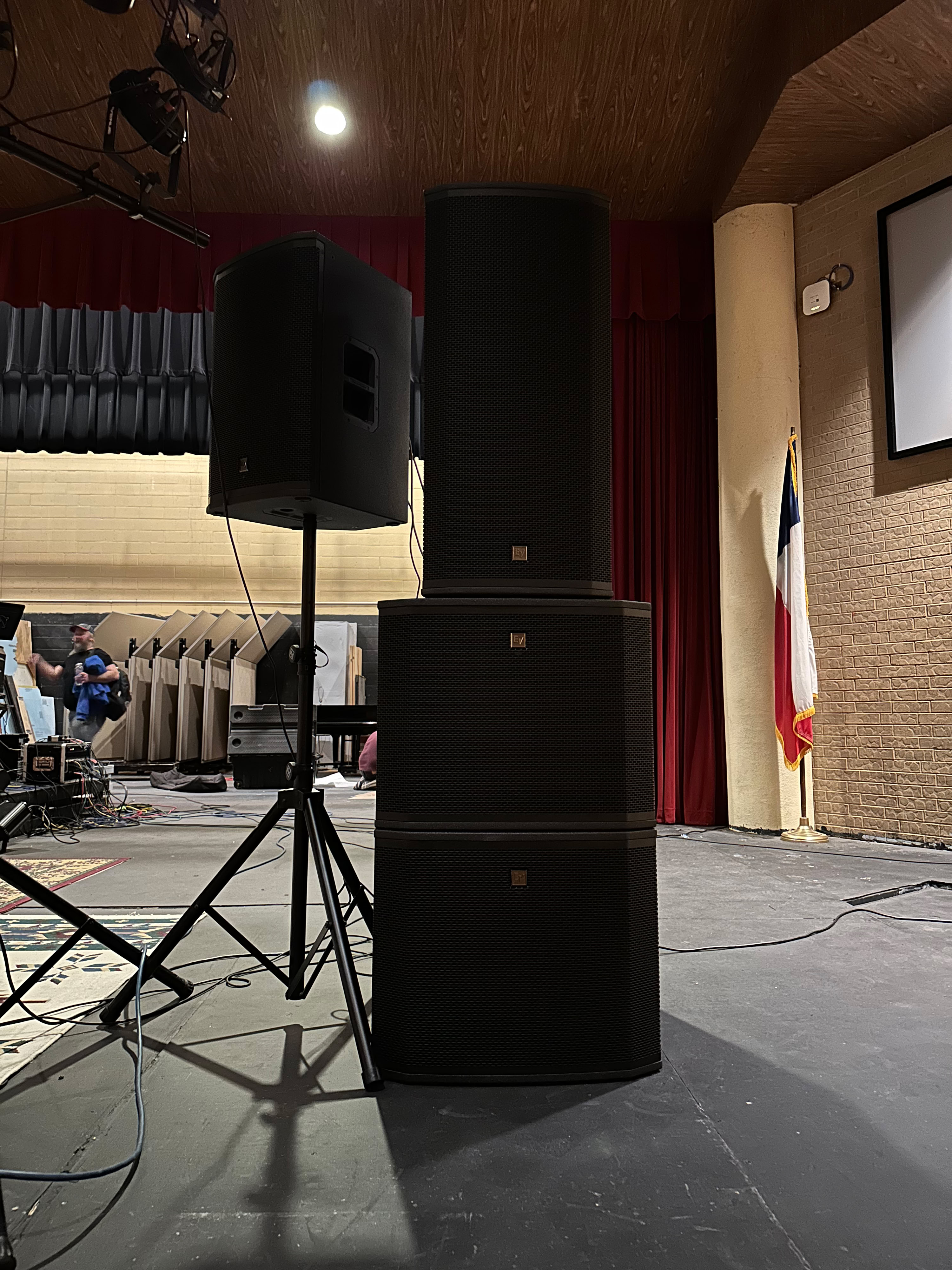 4 EV QRX153/75 3-way, 4 EV QRX218S dual 18” subs